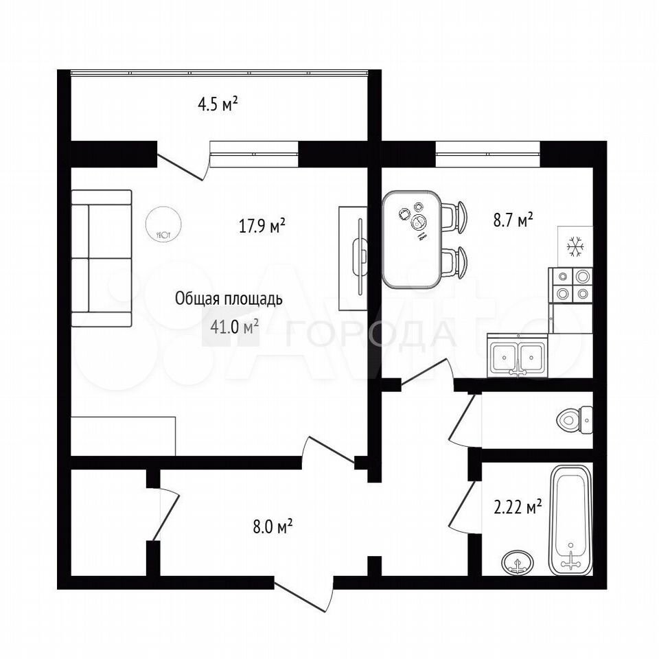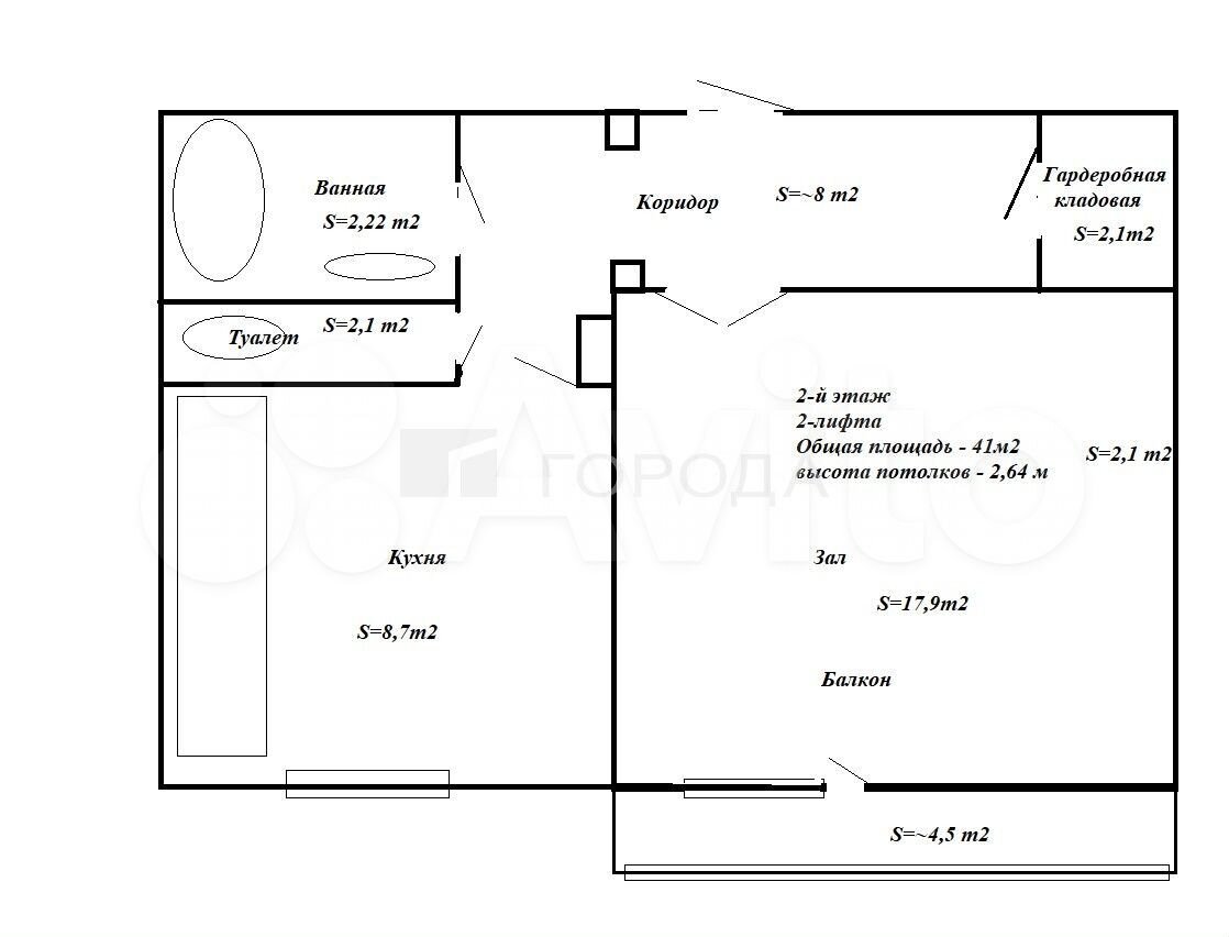 - Общая площадь 41 м2