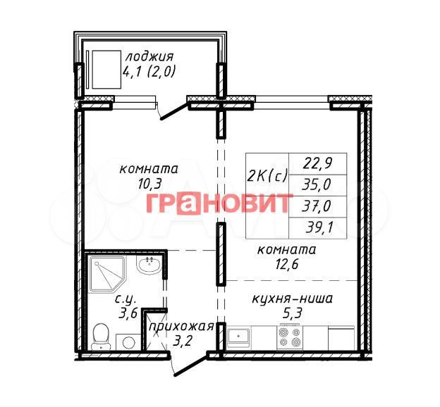 - Общая площадь: 37.1 м2