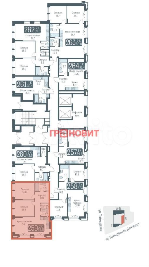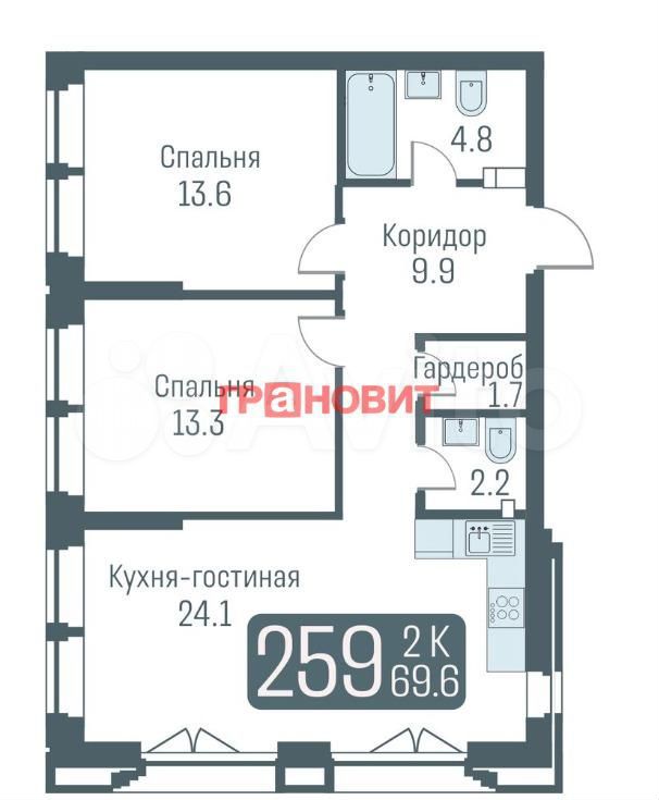 - Общая площадь: 69 м2