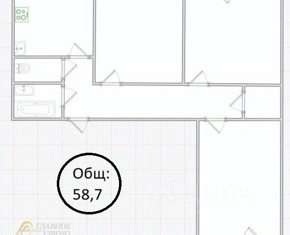 - Общая площадь: 58.7 м2