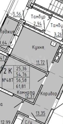 - Общая площадь 54.8 м2