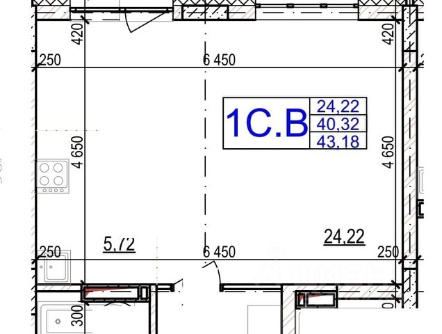 - Общая площадь: 39.5 м2