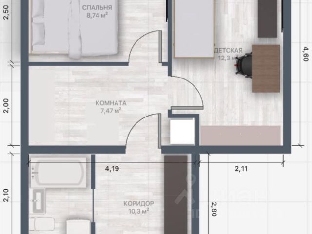 - Общая площадь 39.5 м2