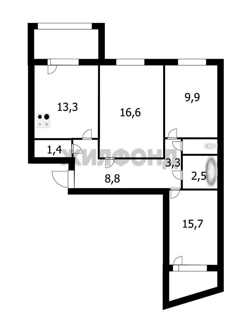 - Площадь кухни: 13.3 м2