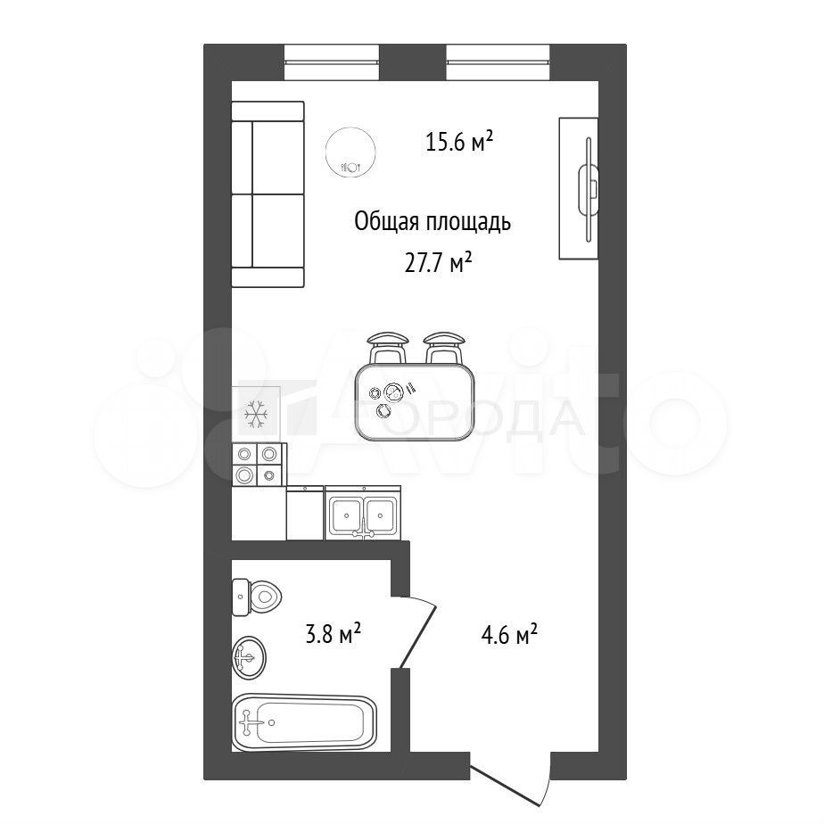 - Общая площадь 27.7 м2
