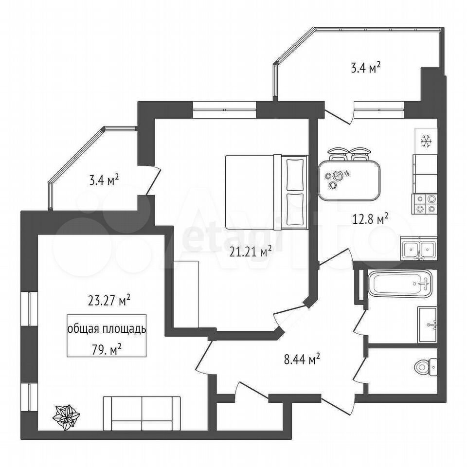 - Общая площадь 79 м2