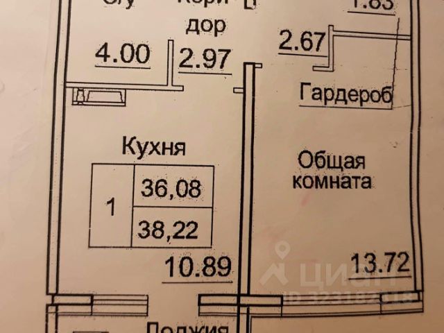 - Общая площадь 38.2 м2