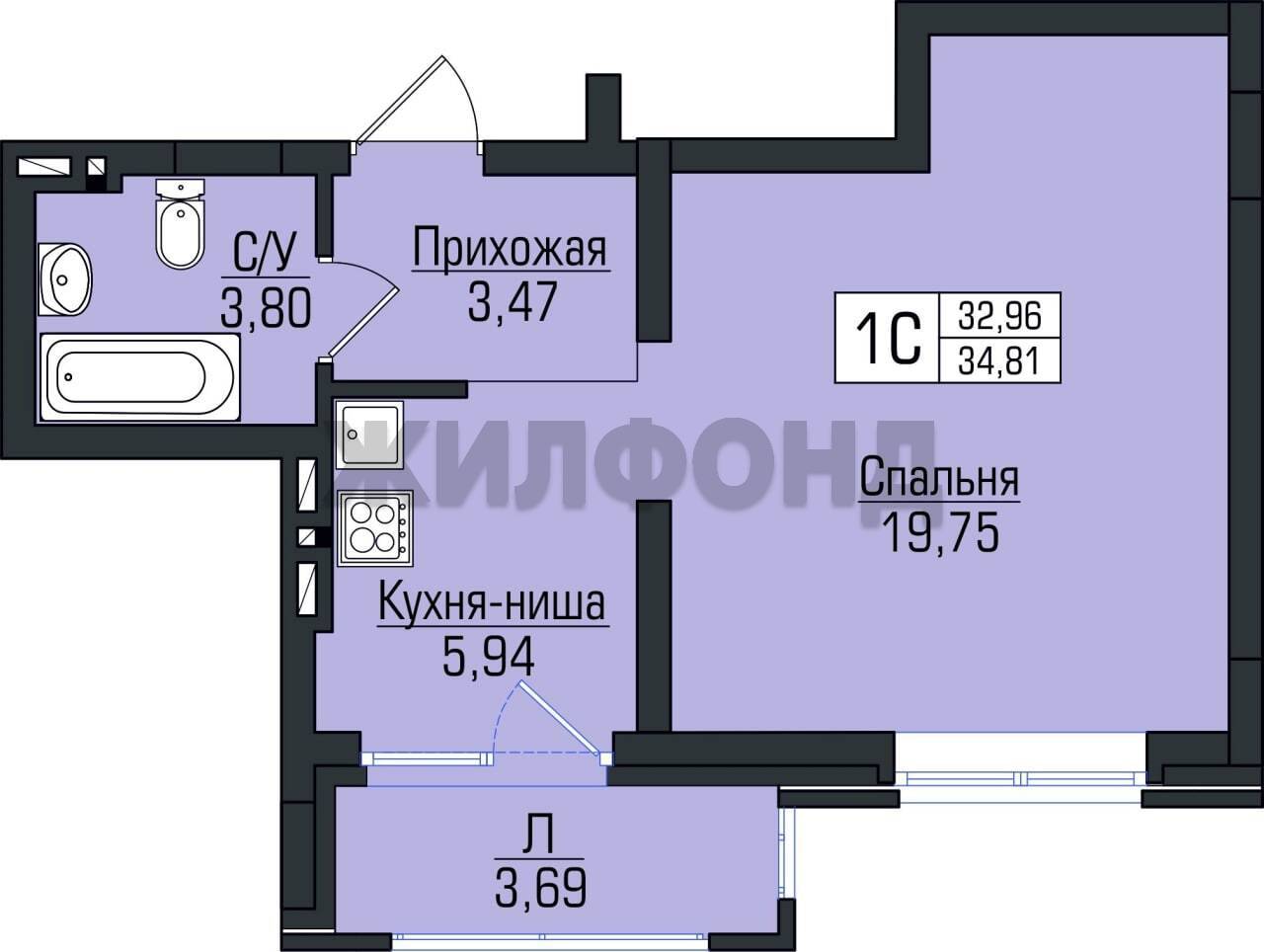 - Общая площадь: 32.9 м2
