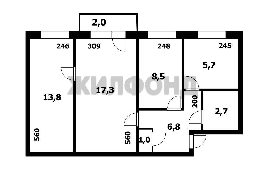 - Общая площадь: 55.8 м2