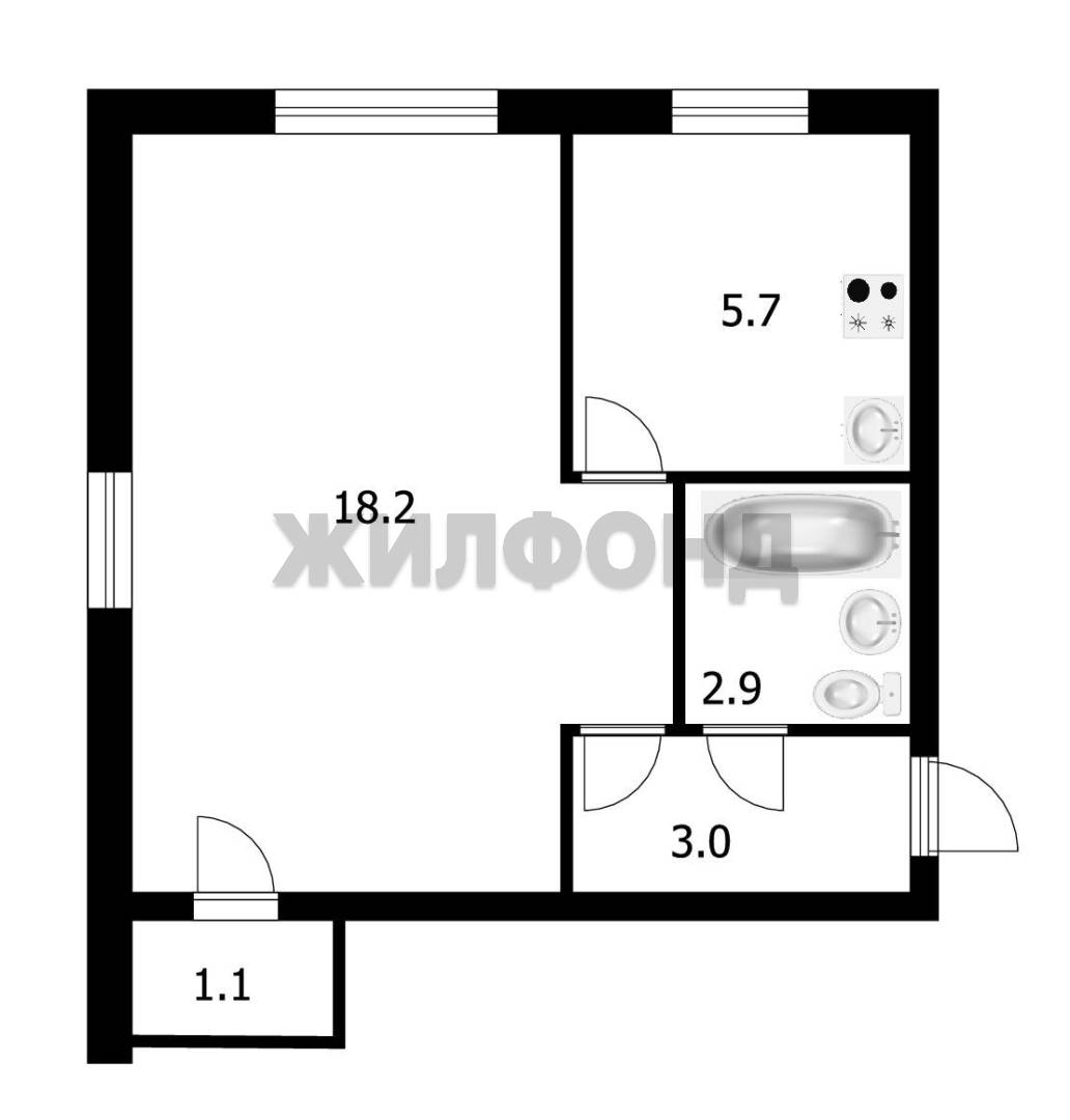 - Общая площадь 30.9 м2
