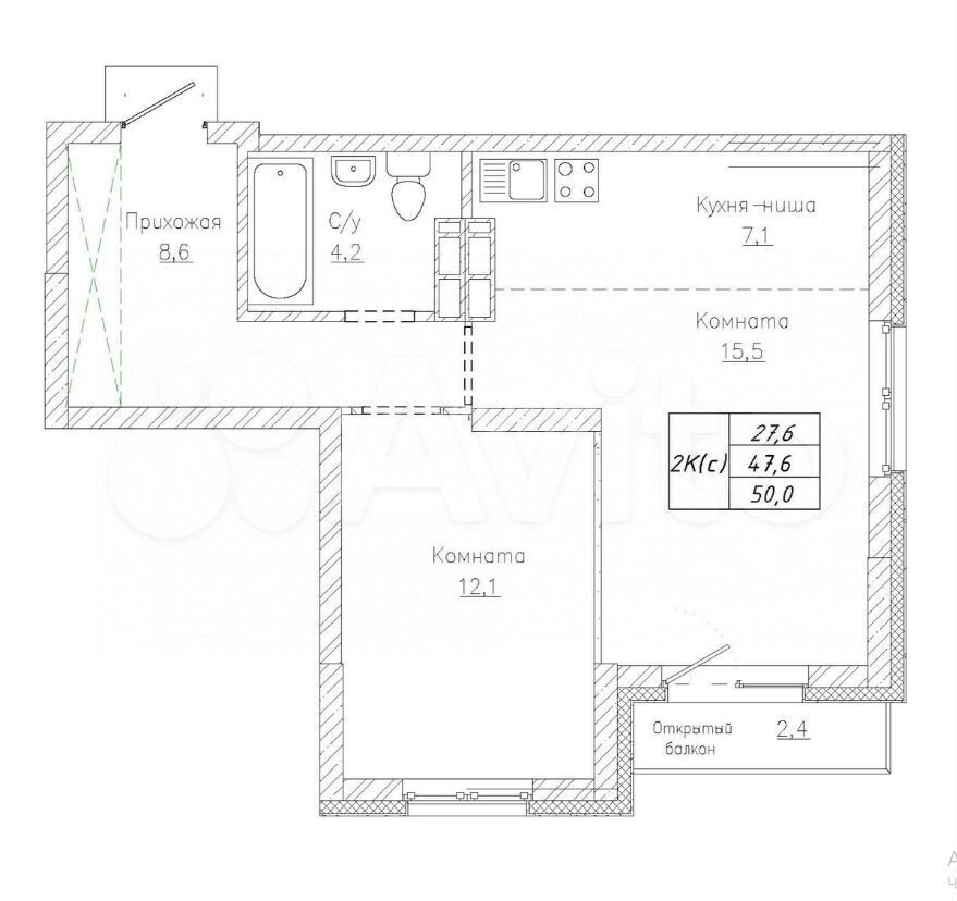 - Общая площадь 47.1 м2