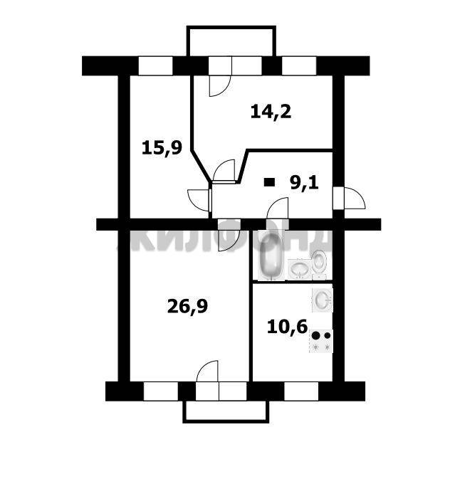 - Площадь кухни: 10.6 м2