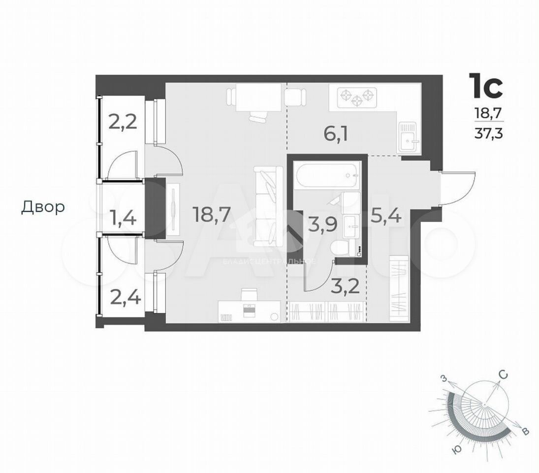 - Общая площадь: 37.3 м2