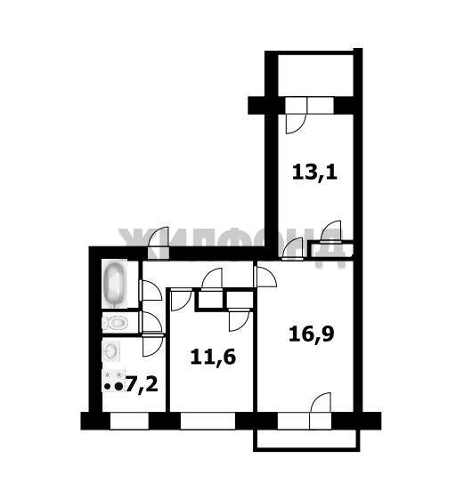 - Общая площадь: 59.9 м2
