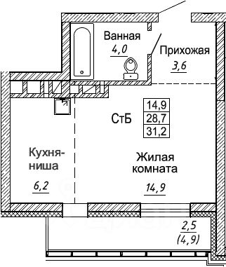 - Общая площадь 31.2 м2