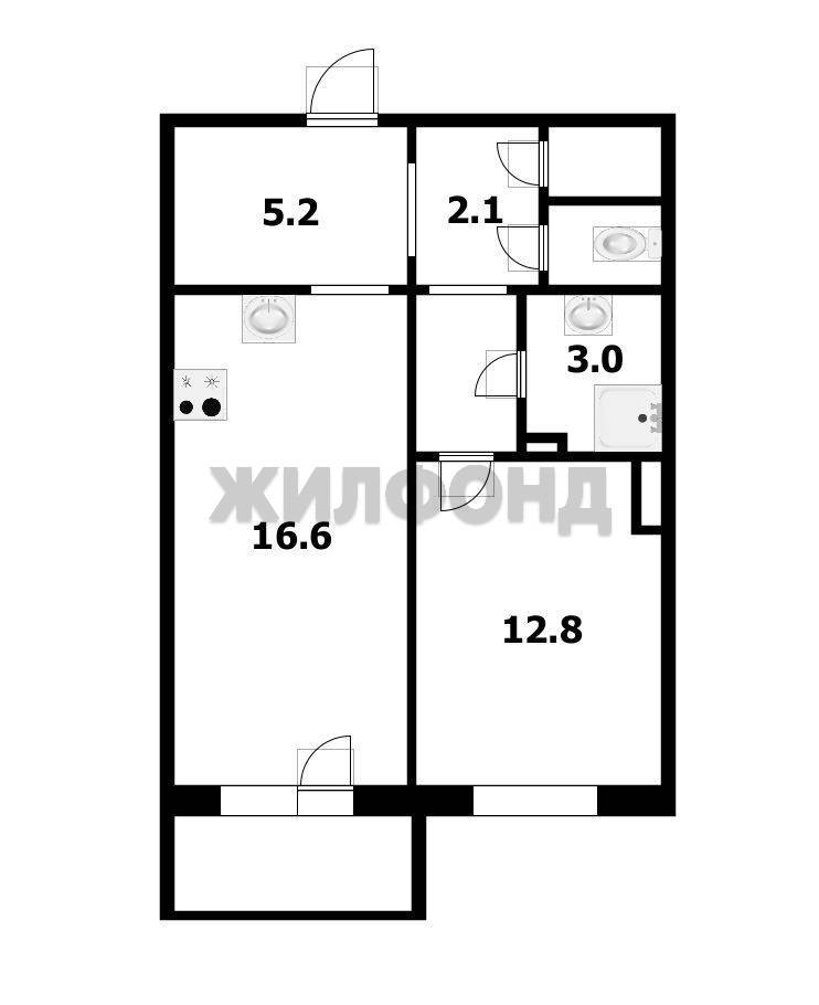 - Площадь кухни: 12.8 м2