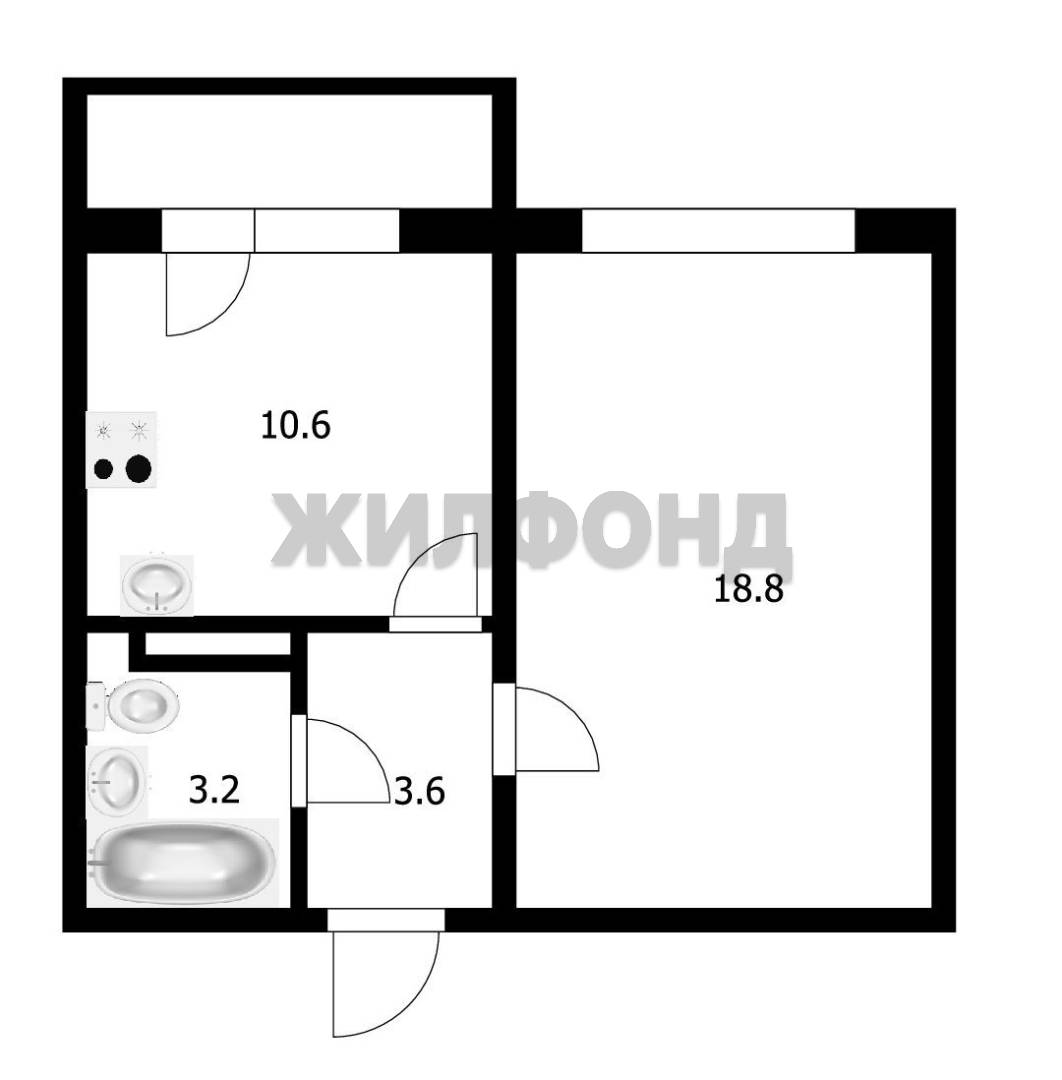 - Жилая площадь: 18.8 м2