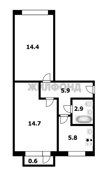 - Общая площадь: 44.5 м2