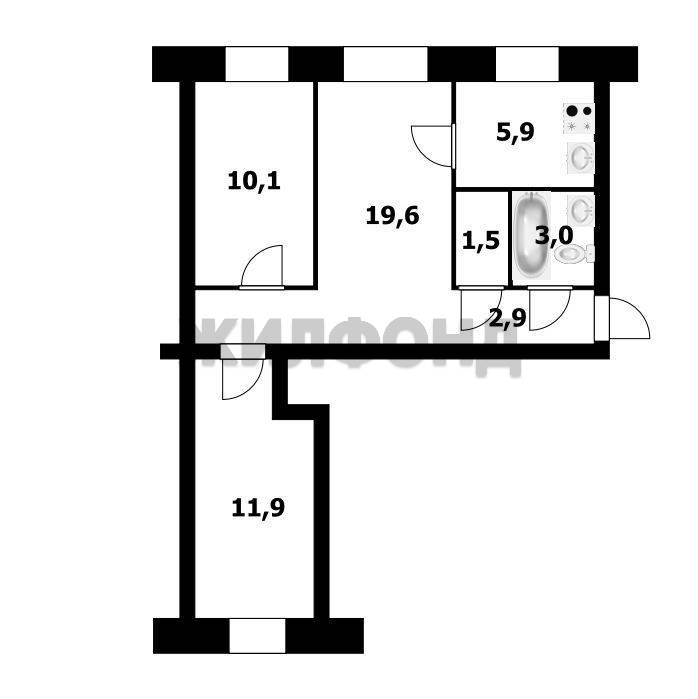 - Площадь кухни: 5.9 м2
