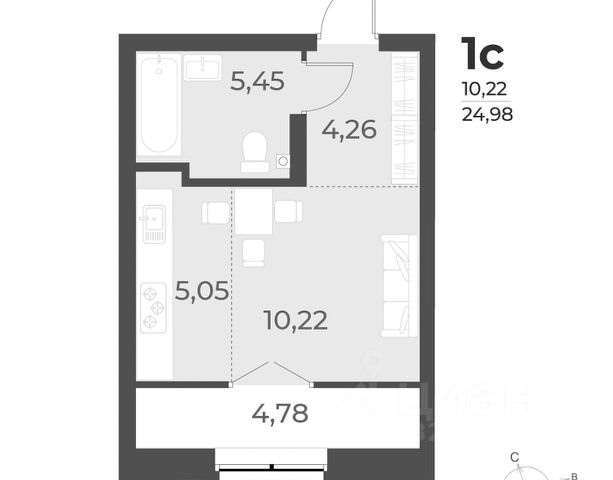 - Общая площадь: 28 м2