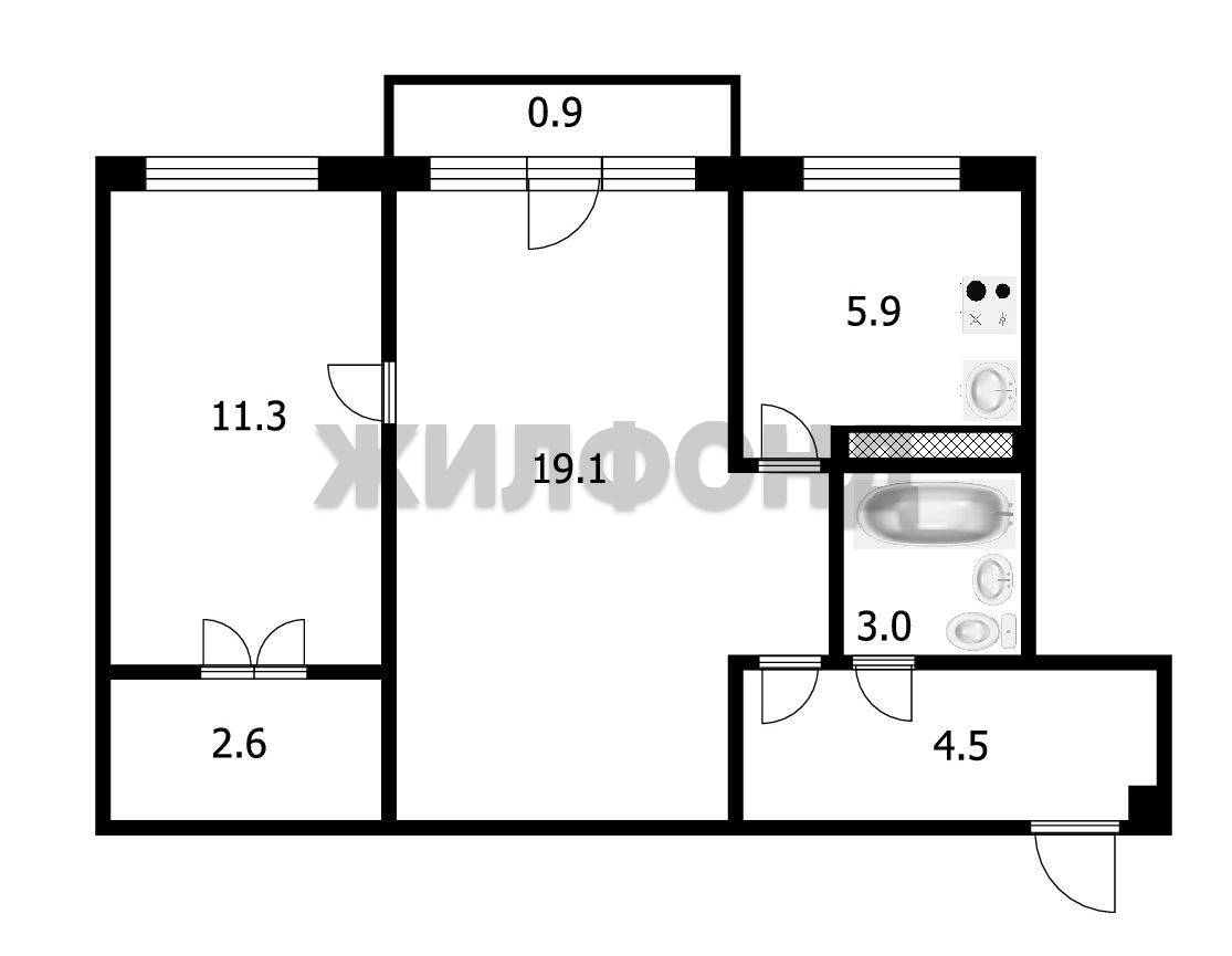 - Жилая площадь 30.4 м2