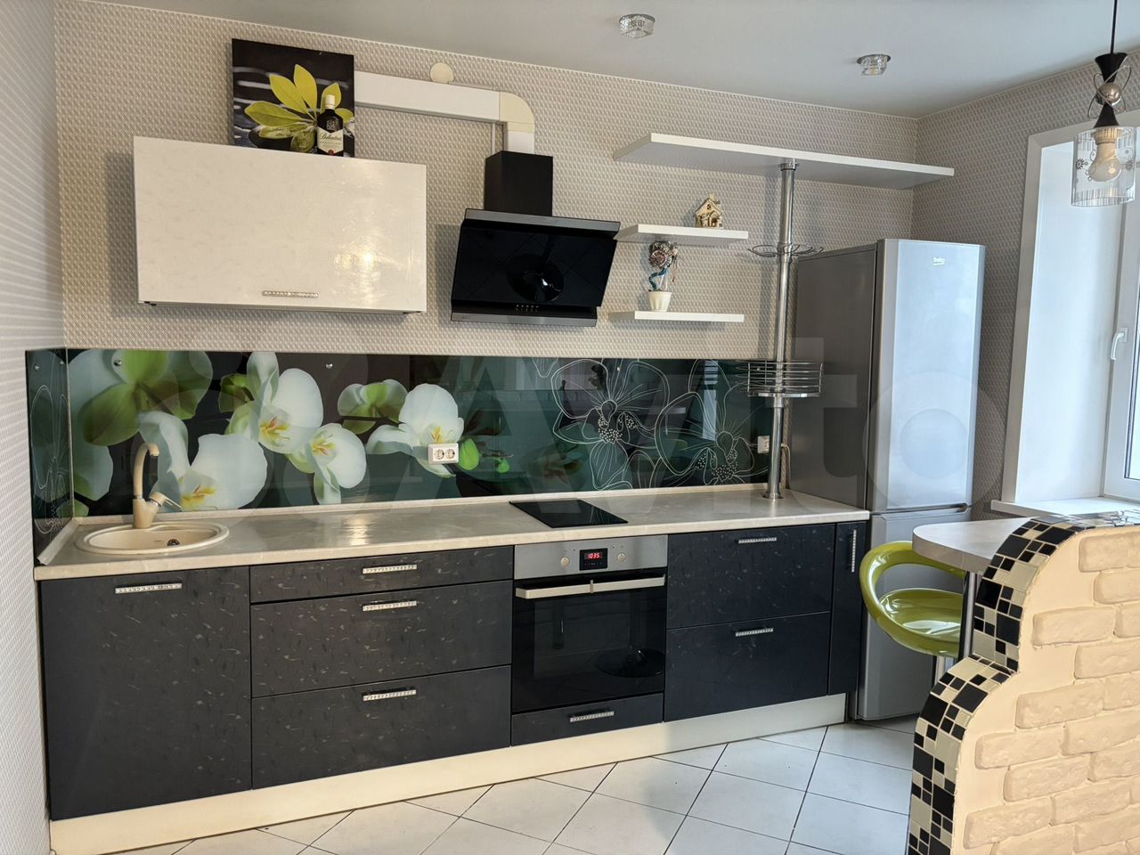 В квартире сделан хороший ремонт, установлен кухонный гарнитур с холодильником, духовым шкафом, варочной поверхностью, вытяжкой. Санузел совместный, отделан плиткой до потолка, установлена ванна, сантехника и стиральная машина. Балкон с панорамными окнами. Имеется встроенная гардеробная, в коридоре есть шкаф для одежды, Во дворе дома есть спортивная и детская площадка, дорожки для прогулок и скамейки. В шаговой доступности школа #65 и #41, остановка общественного транспорта «Полевая», сеть продуктовых и хозяйственных магазинов. Один собственник, документы в порядке.