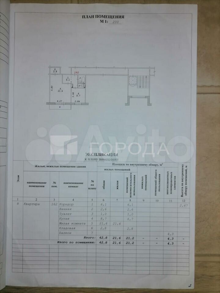 - Общая площадь: 42.8 м2