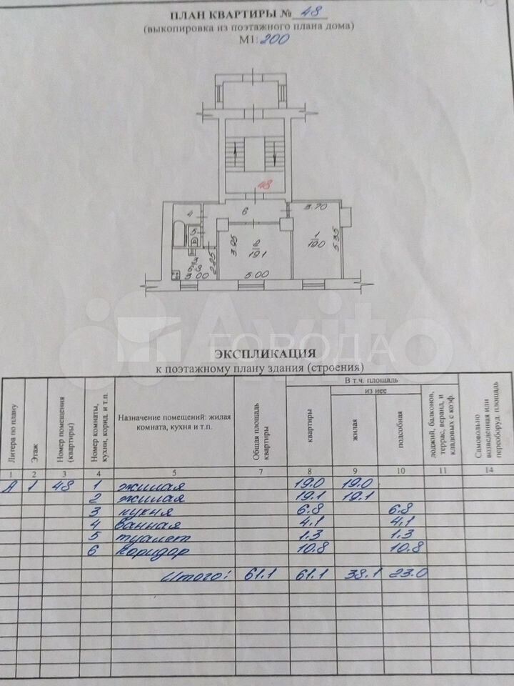 - Общая площадь 61.1 м2