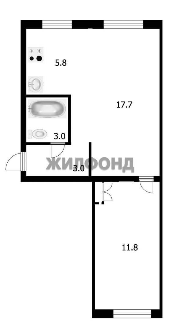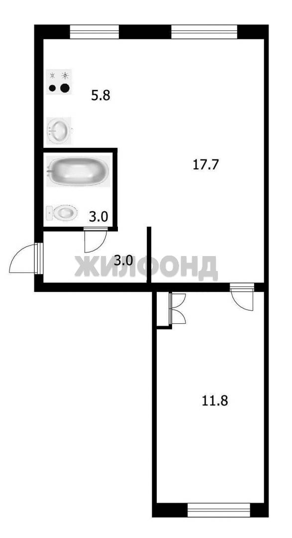 - Площадь кухни: 5.8 м2