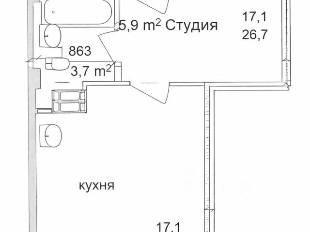 - Общая площадь 27 м2