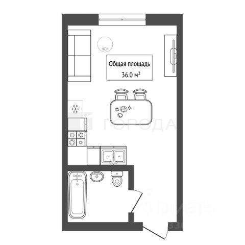 - Общая площадь 36 м2