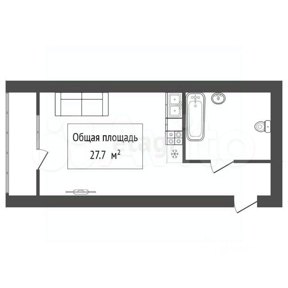 - Общая площадь 27.7 м2