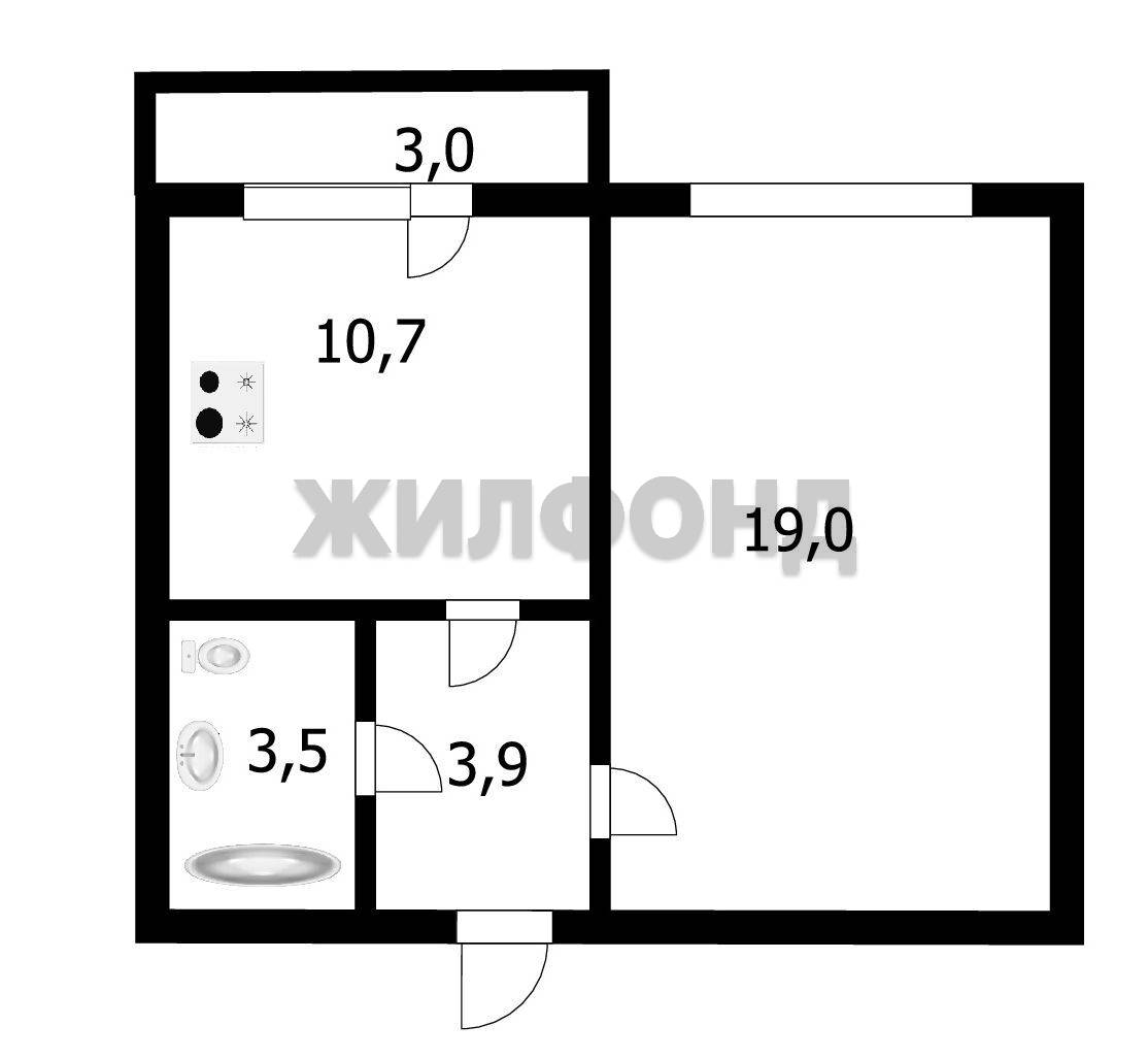 - Жилая площадь: 19 м2