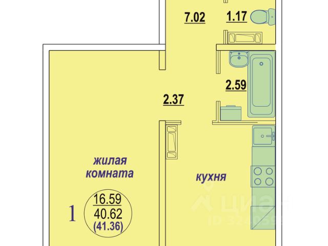 - Общая площадь: 41.4 м2