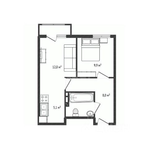 - Общая площадь: 38.8 м2