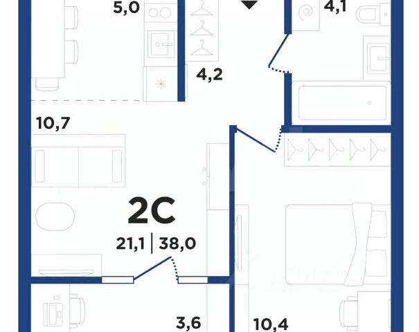- Общая площадь 38 м2