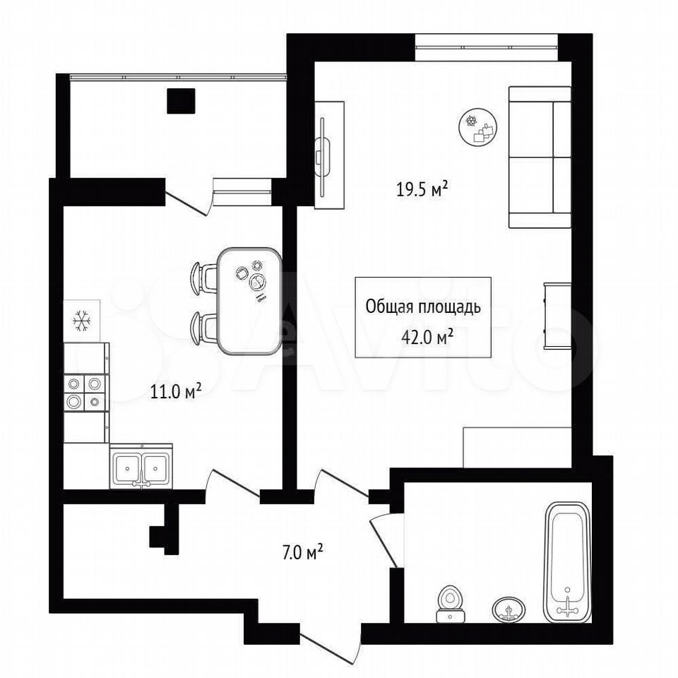 - Общая площадь 42 м2