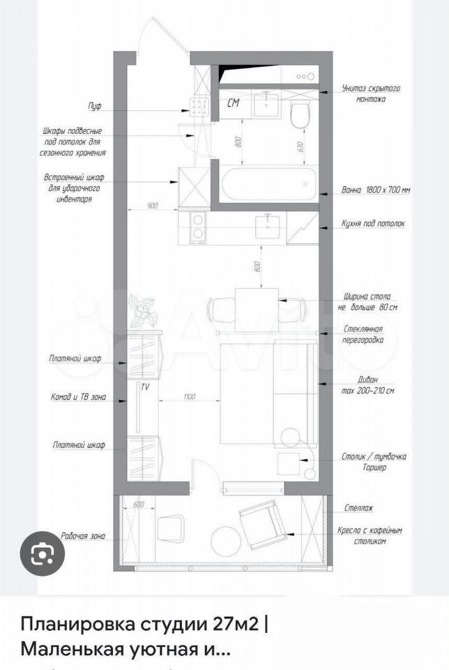 - Общая площадь 27 м2
