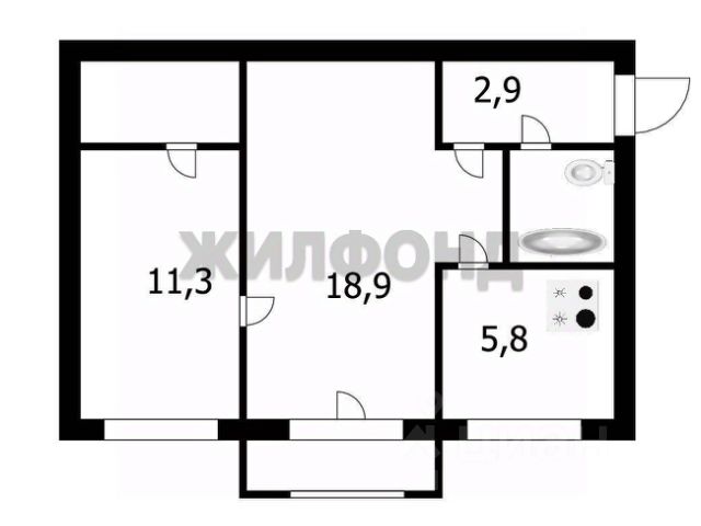 - Общая площадь 44.1 м2