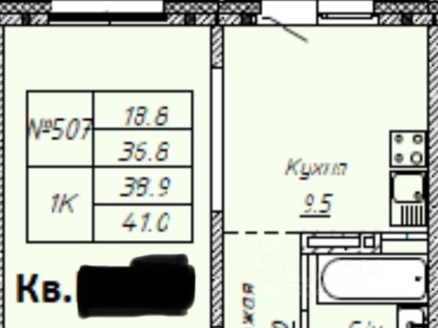 - Общая площадь: 41 м2