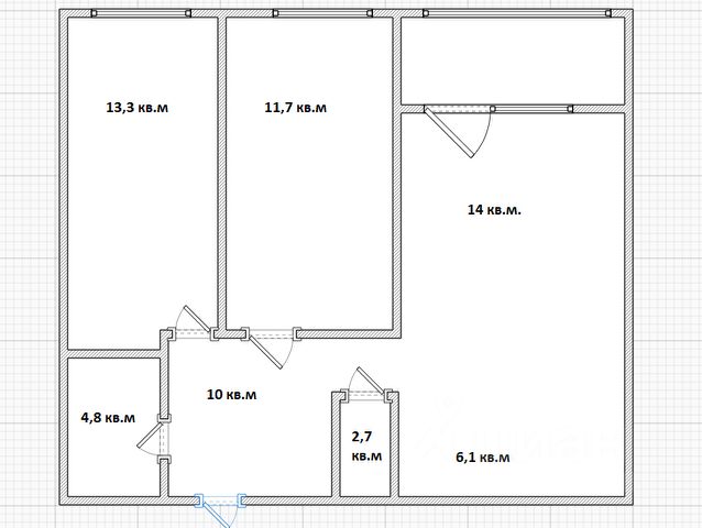 - Общая площадь: 62.6 м2