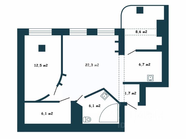 - Общая площадь: 64 м2