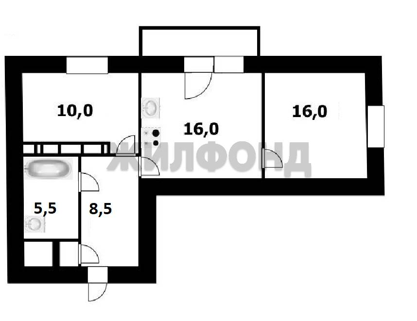- Общая площадь: 56.1 м2