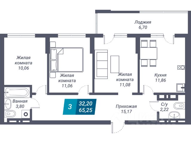 - Общая площадь 66.1 м2