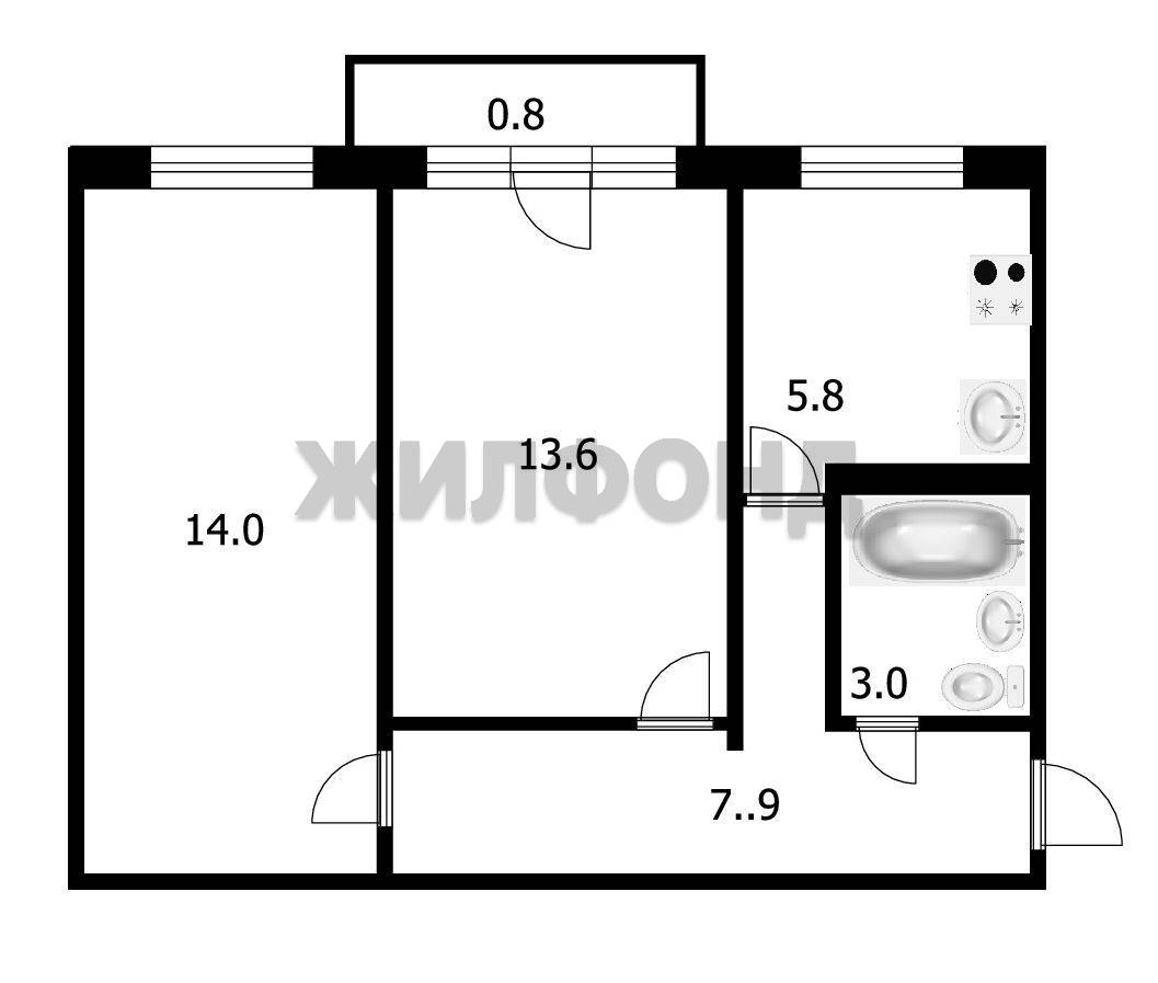 - Площадь кухни: 5.8 м2