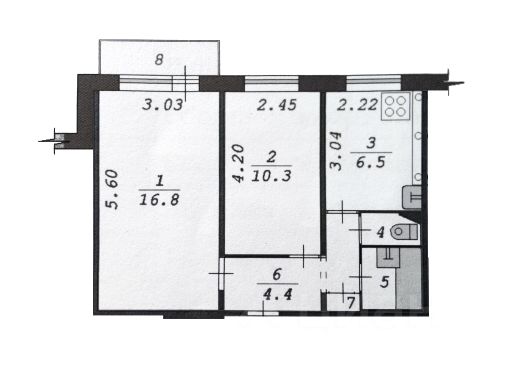 - Общая площадь: 41.6 м2