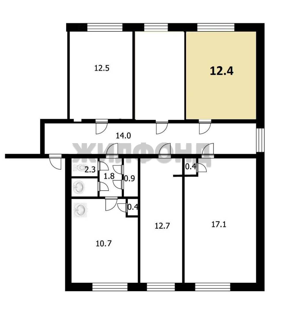 - Жилая площадь: 12.4 м2