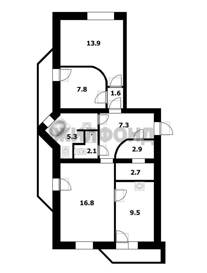 - Площадь кухни: 9.5 м2
