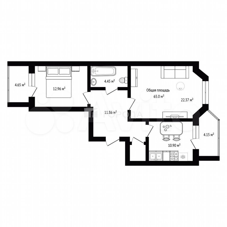 - Общая площадь 65 м2