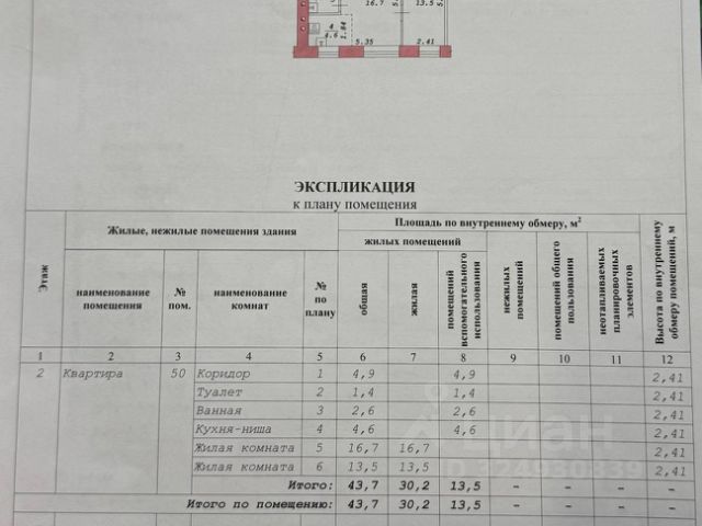 - Общая площадь: 44.4 м2